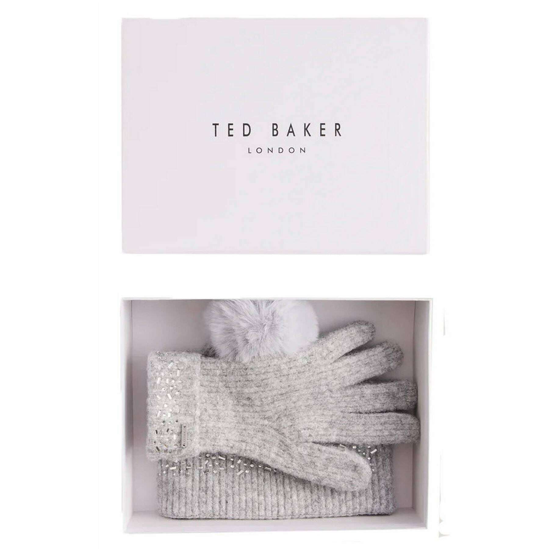 Ted Baker Keriis Rhingestone Tricoted Hat and Gants Set - Gray