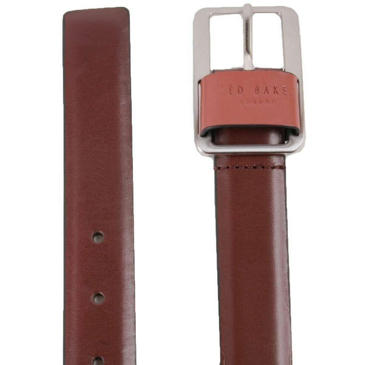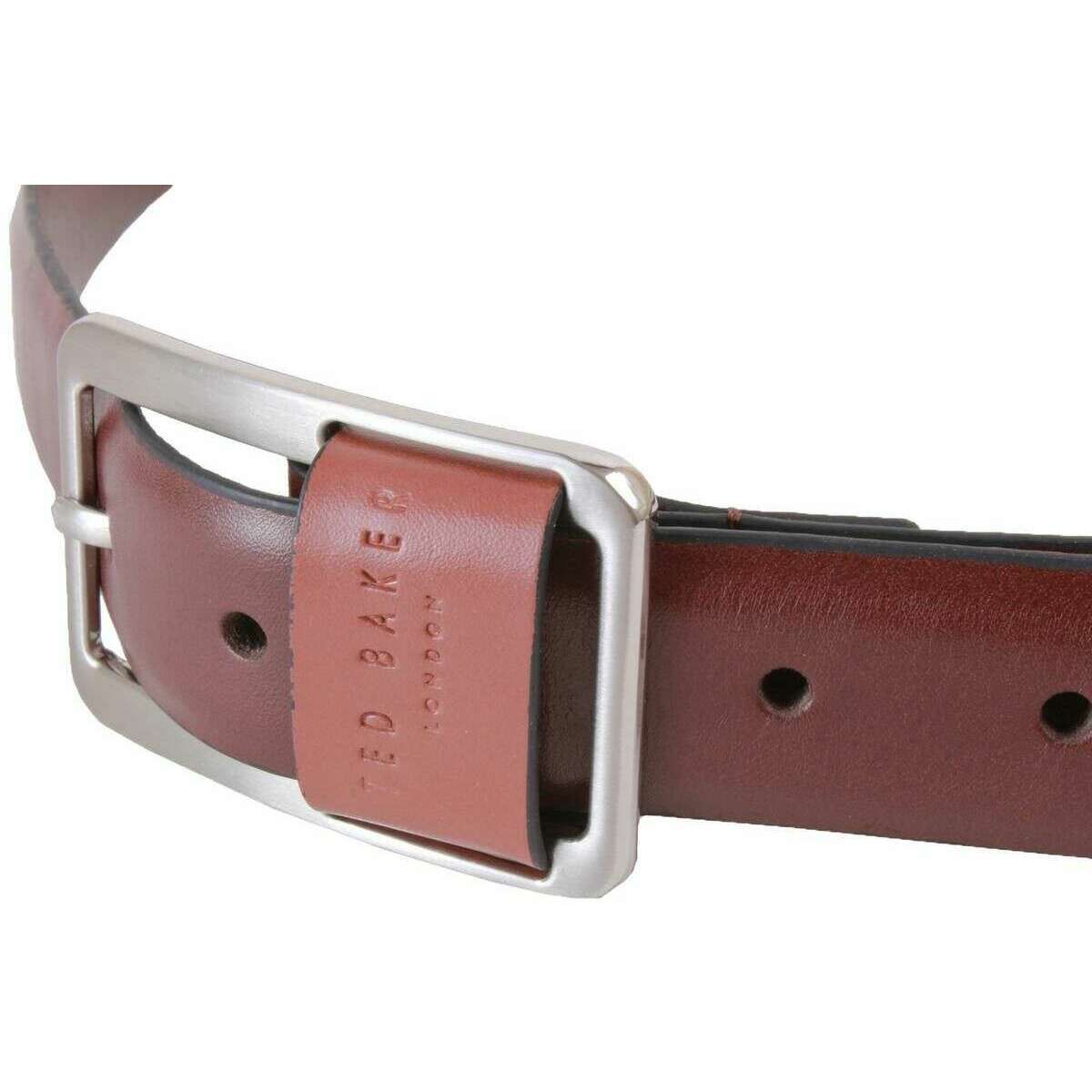 Cette ceinture koen pour hommes bien faite de Ted Baker est de couleur marron chocolat et est fabriquée à partir de cuir 100 % bovin. Toutes les ceintures sont livrées avec des étiquettes Ted Baker. La ceinture Ted Baker Koen - Marron chocolat offre un design soigné mais original avec un détail contrasté sur la boucle qui a été fini avec la marque Ted Baker en creux. Le cuir lisse lui confère un look élégant qui s'associera parfaitement à votre pantalon formel ou vous pourrez ajouter une touche sophistiquée à votre jean de tous les jours.