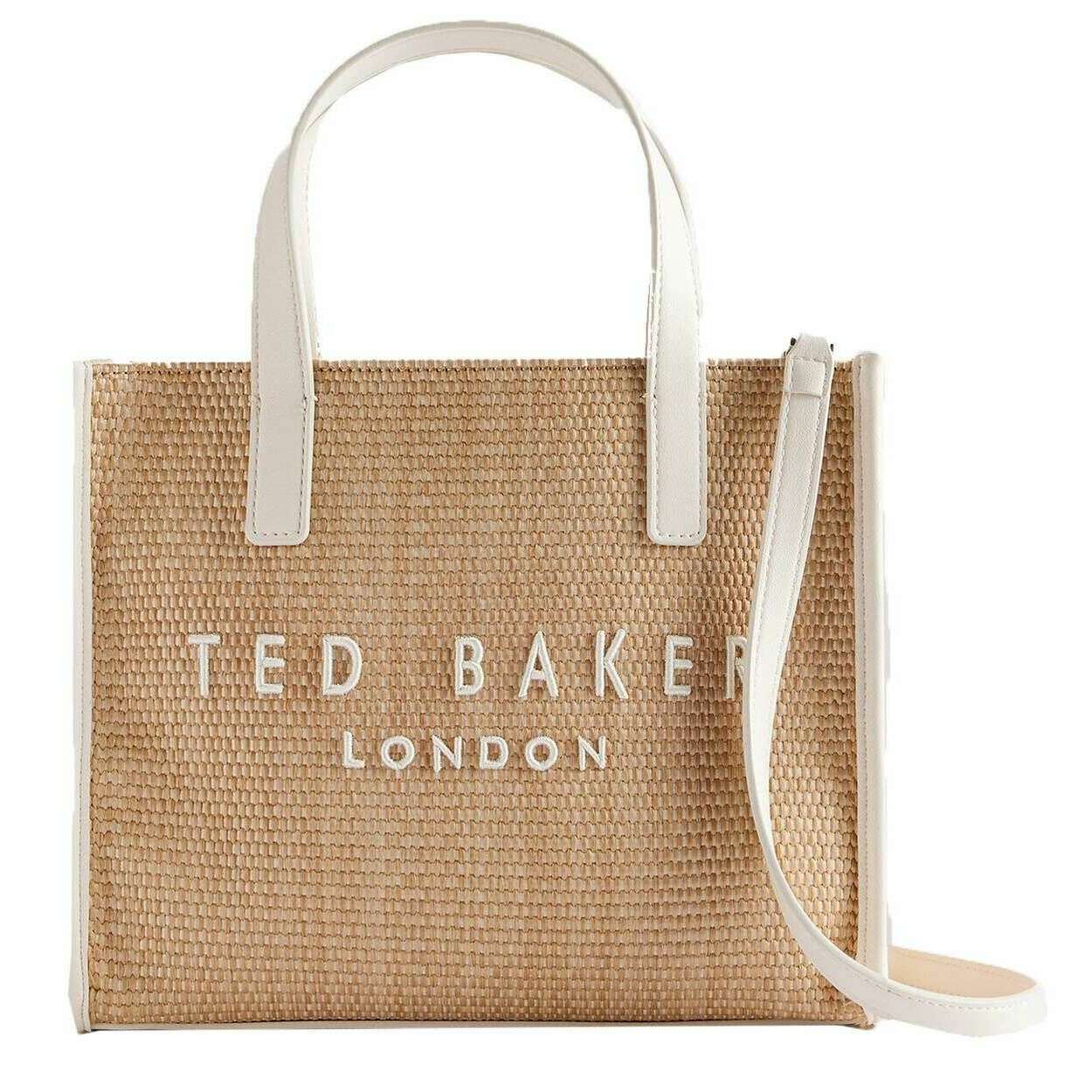 Petit sac emblématique Ted Baker Paolina en faux raphia - Ivoire/Beige