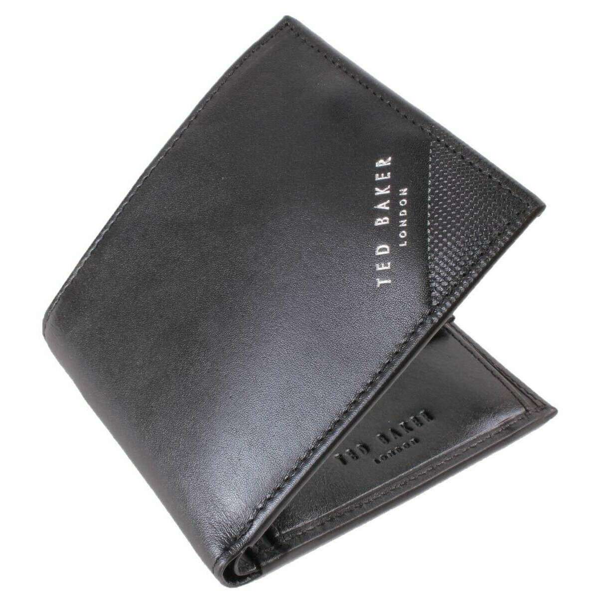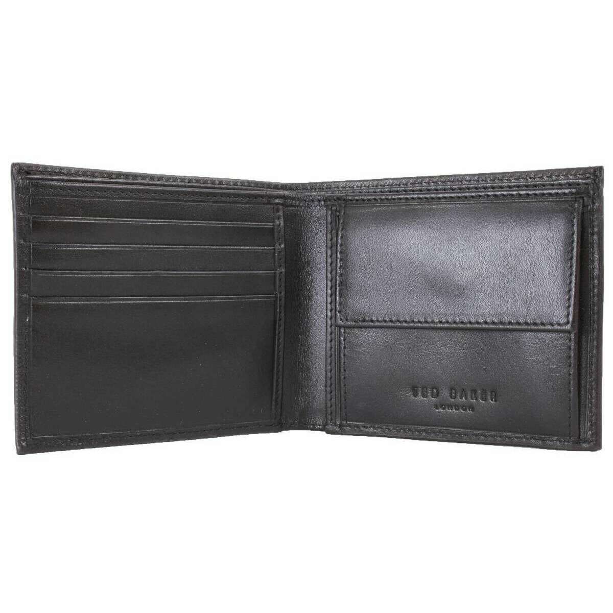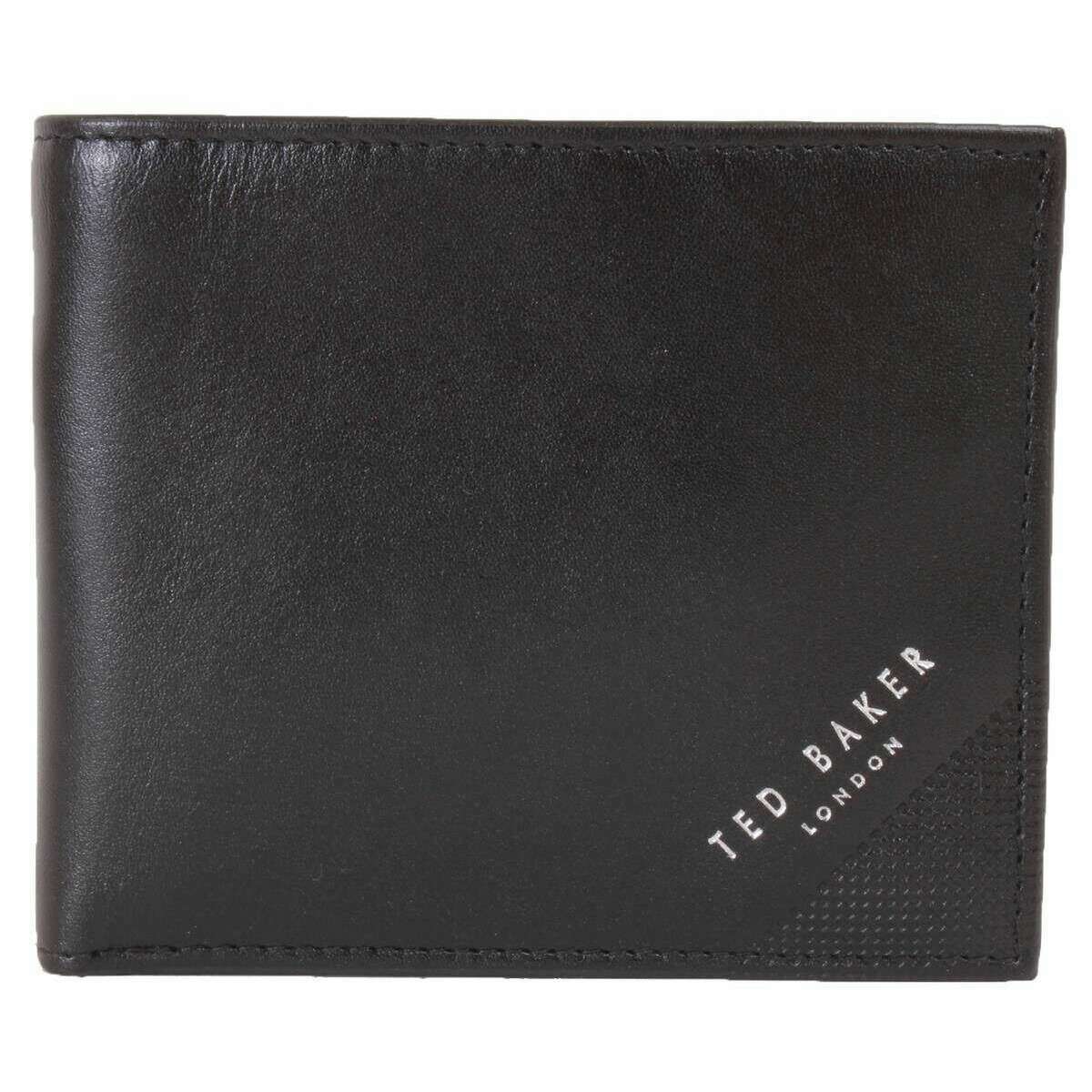 Portefeuille à deux volets en cuir avec coins gaufrés Prugs de Ted Baker - Noir