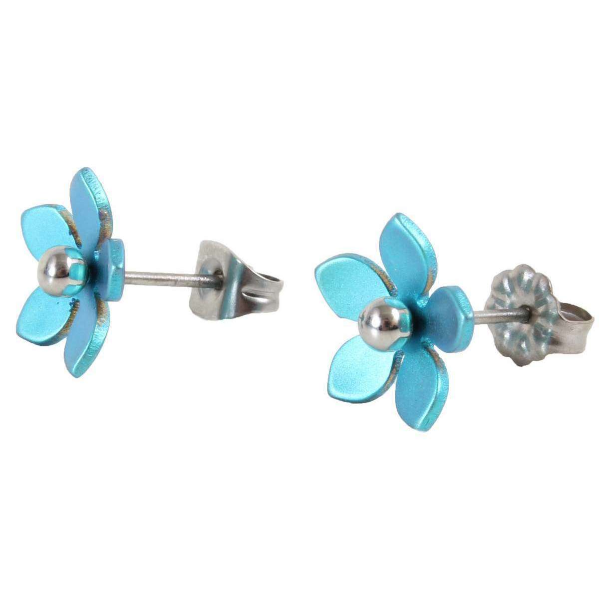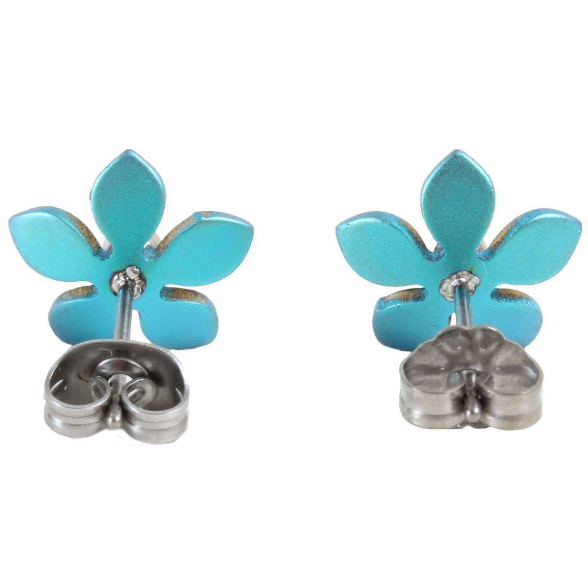 Ti2 Titanium 13 mm cinq boucles d'oreilles de goujon à pétale - Kingfisher Blue