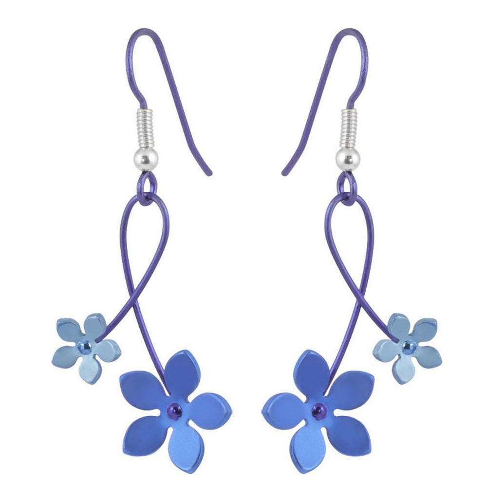 Ti2 Titanium 30 mm double goutte à cinq boucles d'oreilles de fleur de pétale - bleu