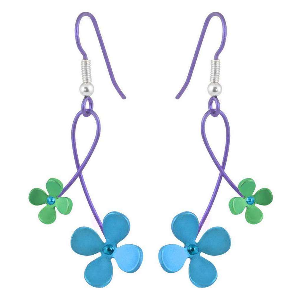 Ti2 Titanium 30 mm double goutte à deux boucles d'oreilles de fleur de pétale - vert