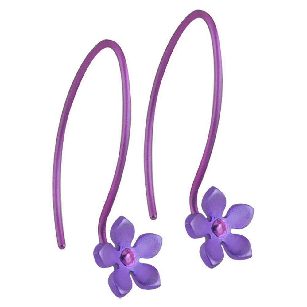 Ti2 Titanium 8 mm cinq boucles d'oreilles de fleur de pétale - Purple impérial