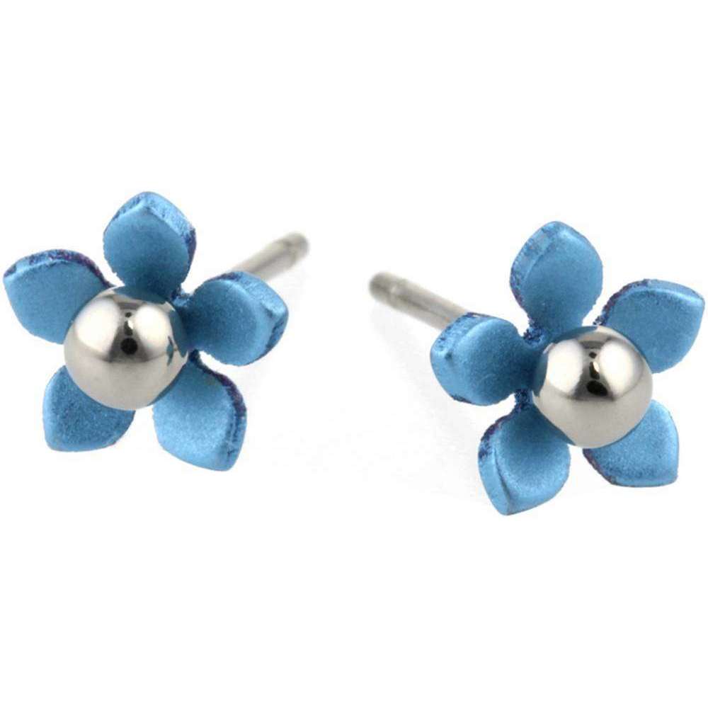TI2 Titanium 8 mm cinq boucles d'oreilles de goujon de fleur de perle polies à Petal - Aqua Bleu