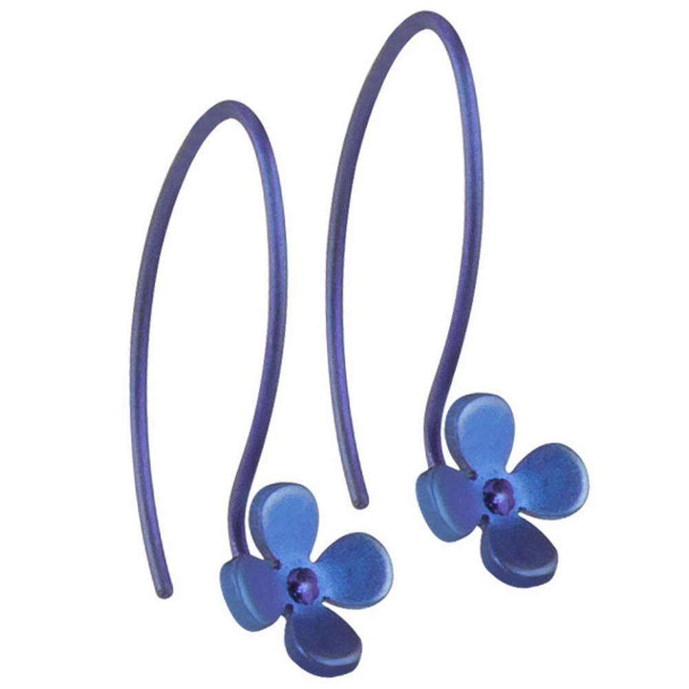 Ti2 Titanium 8 mm quatre boucles d'oreilles de fleur de pétale - Marine