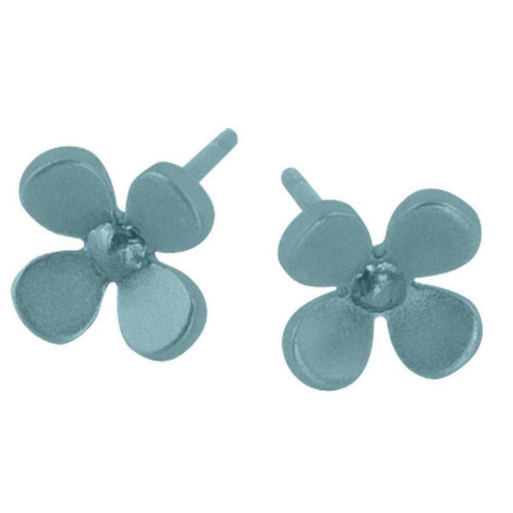 TI2 Titanium 8 mm quatre boucles d'oreilles de goujon à fleurs de pétale - Bleu ciel