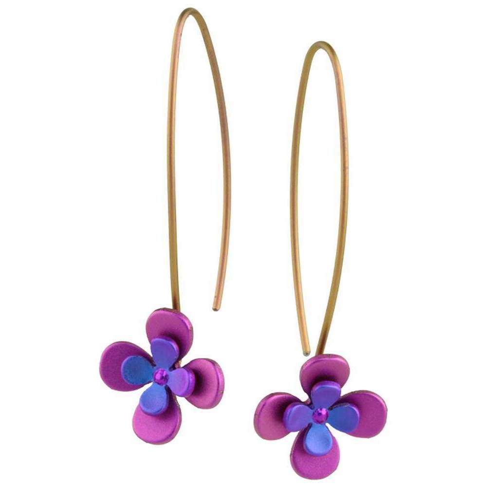 Ti2 Titanium double quatre boucles d'oreilles de fleur de pétale - rose