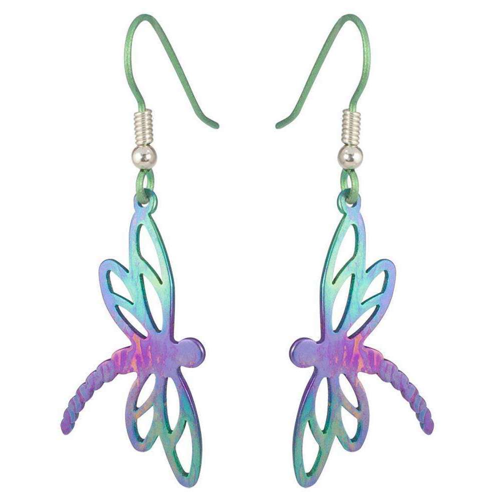 Boucles d'oreilles TI2 Titanium Dragonfly - vert / violet / rose