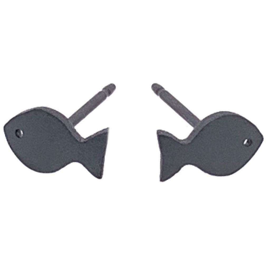 Boucles d'oreilles de goujon Ti2 Titanium Fish 7 mm - noir