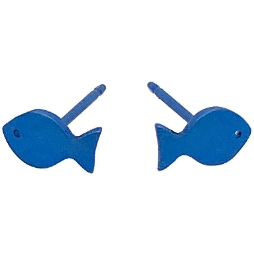 Boucles d'oreilles de goujon Ti2 Titanium Fish 7 mm - bleu foncé