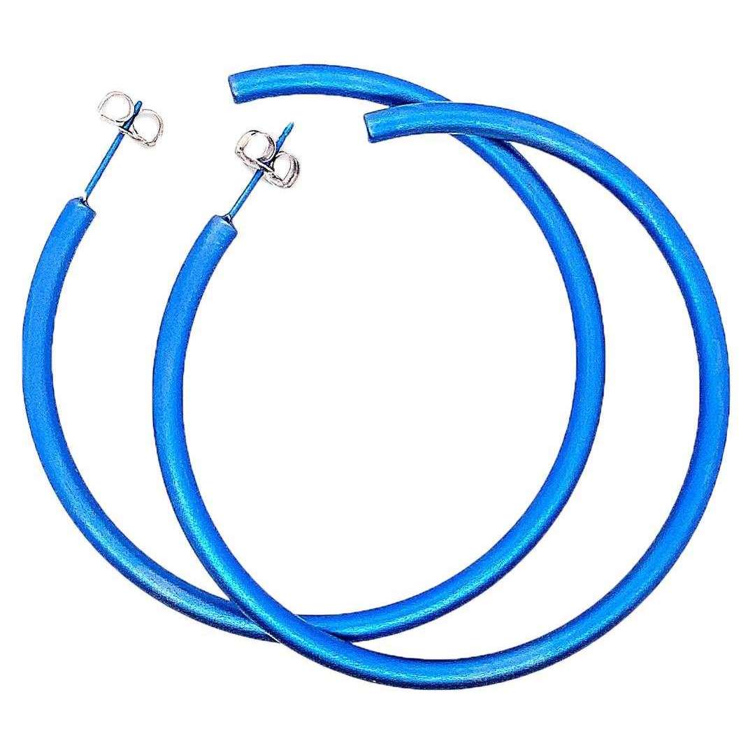 Ti2 Titanium Grands boucles d'oreilles rond - bleu foncé