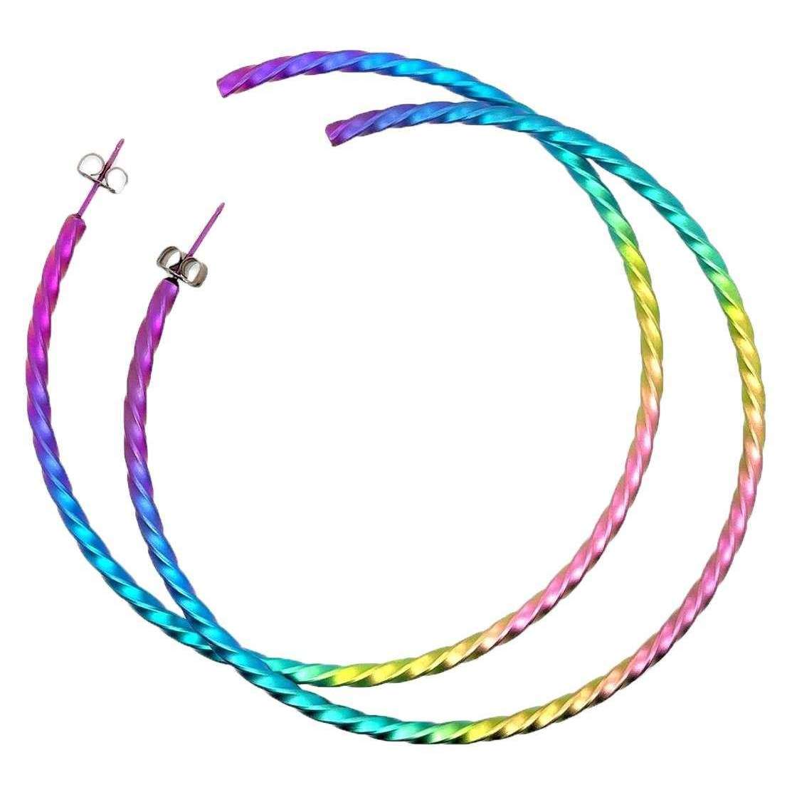Boucles d'oreilles TI2 Titanium grandes cerceaux torsadés - arc-en-ciel