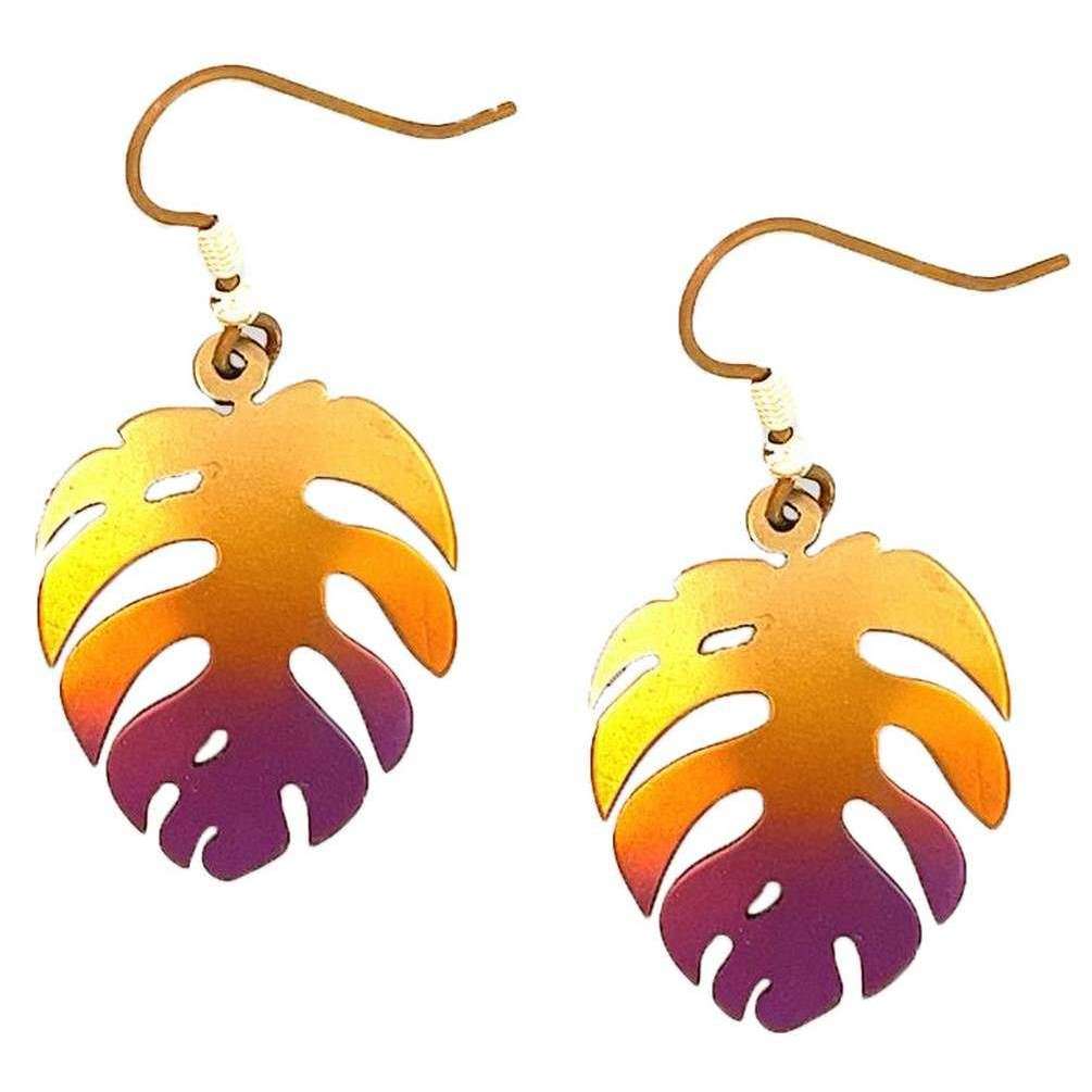 Boucles d'oreilles à feuilles de feuilles de titane Ti2 - brun