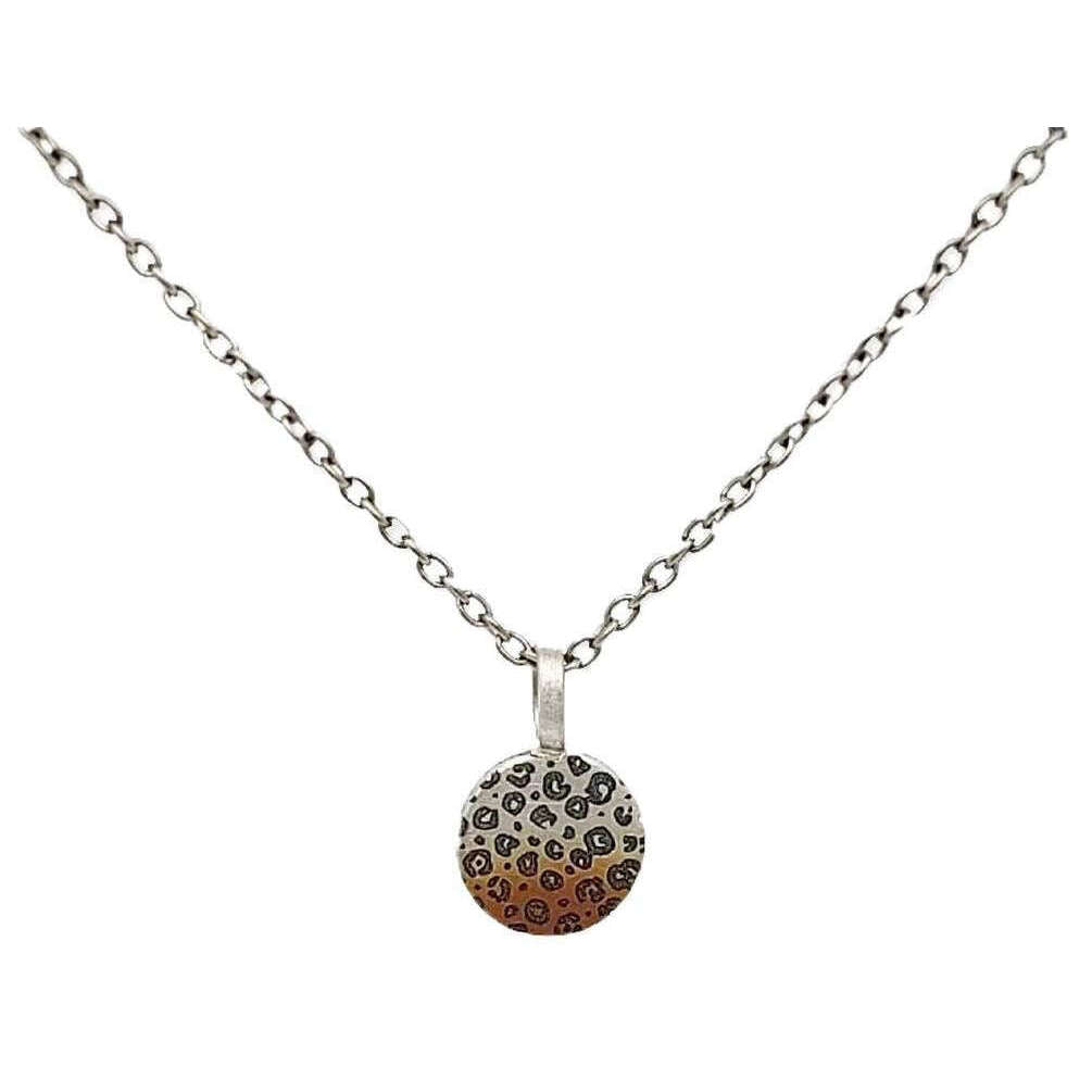 TI2 Titanium Leopard Print Small Round Pendant - Silver / Brown