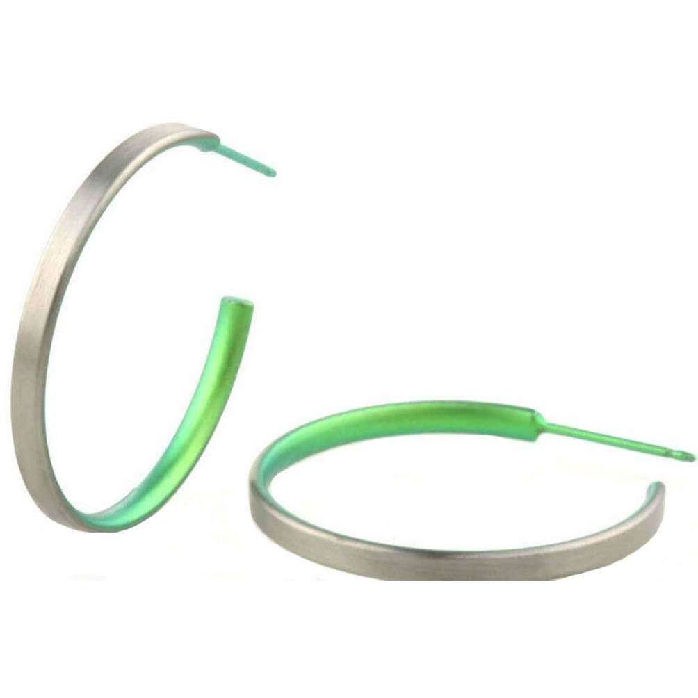 Boucles d'oreilles de cerceau moyen Ti2 Titanium - vert