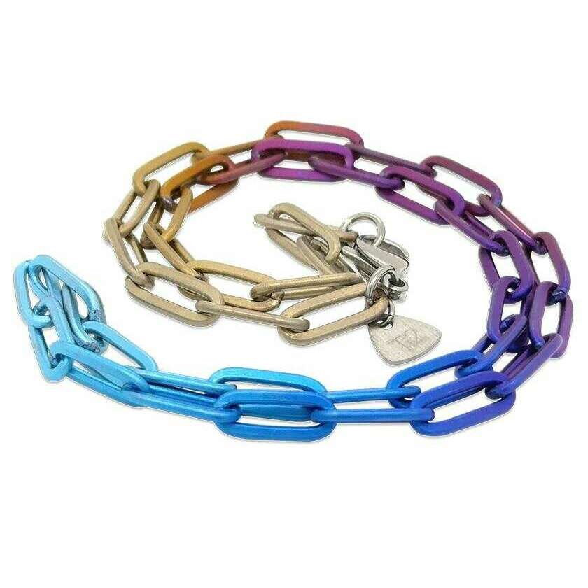Fabriquée à partir de 100% de titane est cette chaîne bleue unisexe en trombone par le titane du concepteur TI2. Ti2 Titanium a fait cette chaîne de trombones en Grande-Bretagne. Toutes les chaînes sont complètes avec une boîte de présentation Ti2 en titane. La chaîne de trombone Ti2 Titanium - Blue a une conception de trombone unique. Simple pour correspondre à n'importe quelle tenue et parfait à porter tous les jours. Le titane est un matériau léger qui signifie qu'il est confortable à porter, il est également hypoallergénique, ce qui le rend gentil pour votre peau et a une forte résistance à la corrosion, ce qui ne le rend pas affecté par l'eau de mer, le chlore et de nombreux autres produits chimiques. Veuillez noter: la couleur du titane peut varier.