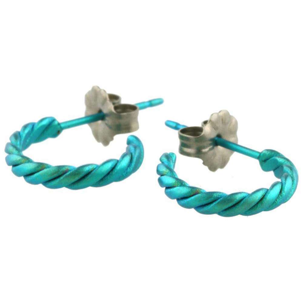 Boucles d'oreilles TI2 Titanium Small Twisted Hoop - Kingfisher Blue