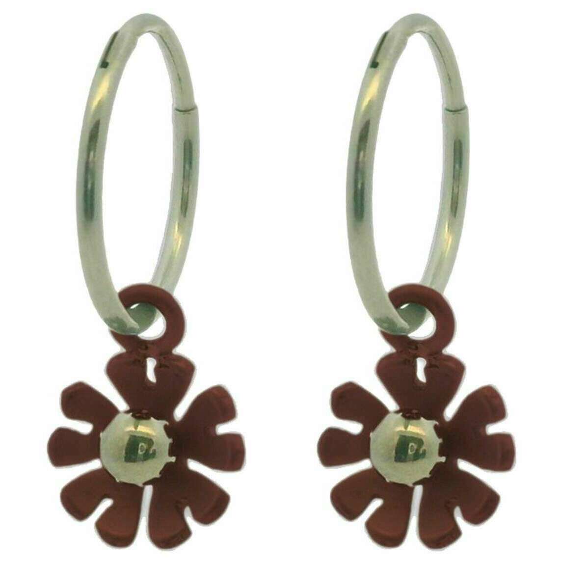Ti2 Titanium Ten Petal Flower Charm Boucles d'oreilles - Brown
