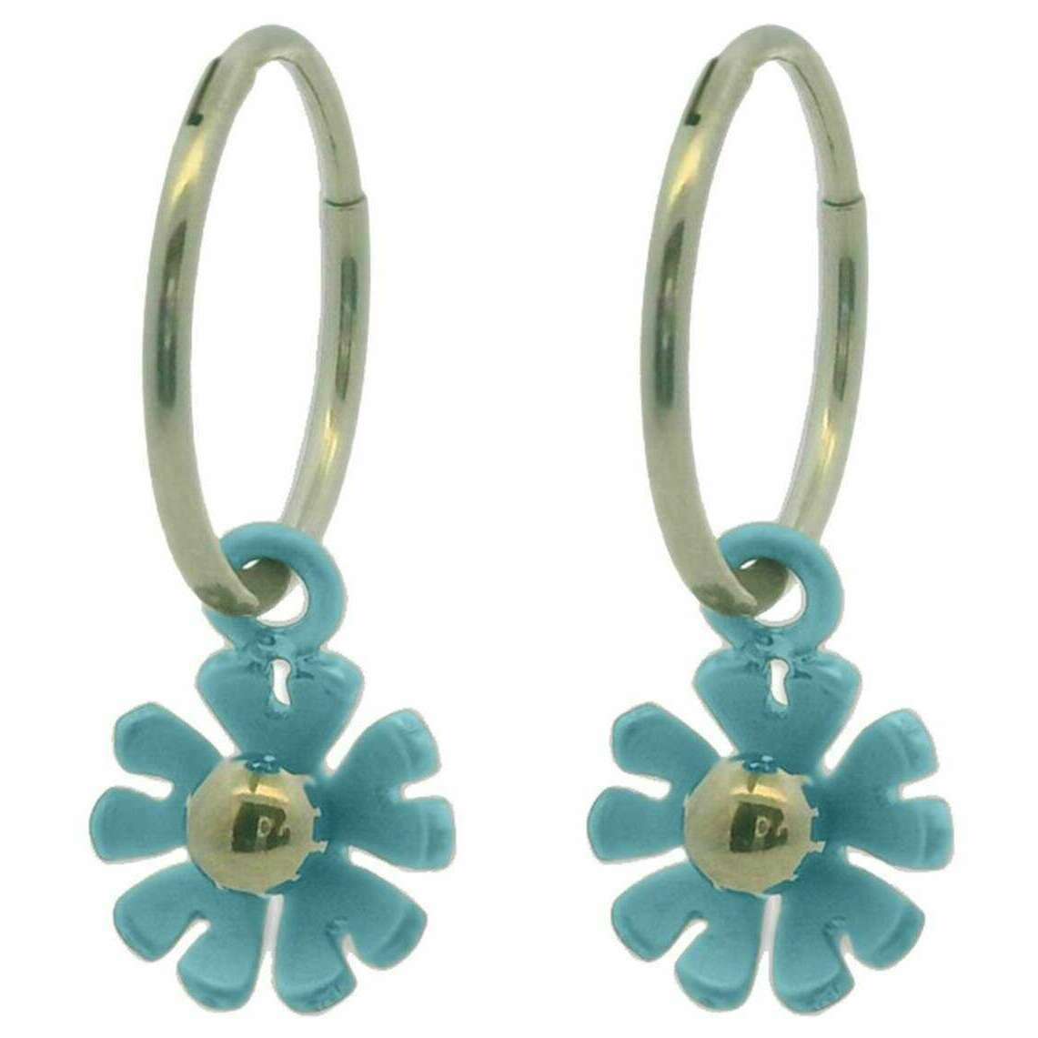 Ti2 Titanium Ten Petal Flower Charm Boucles d'oreilles - Bleu clair