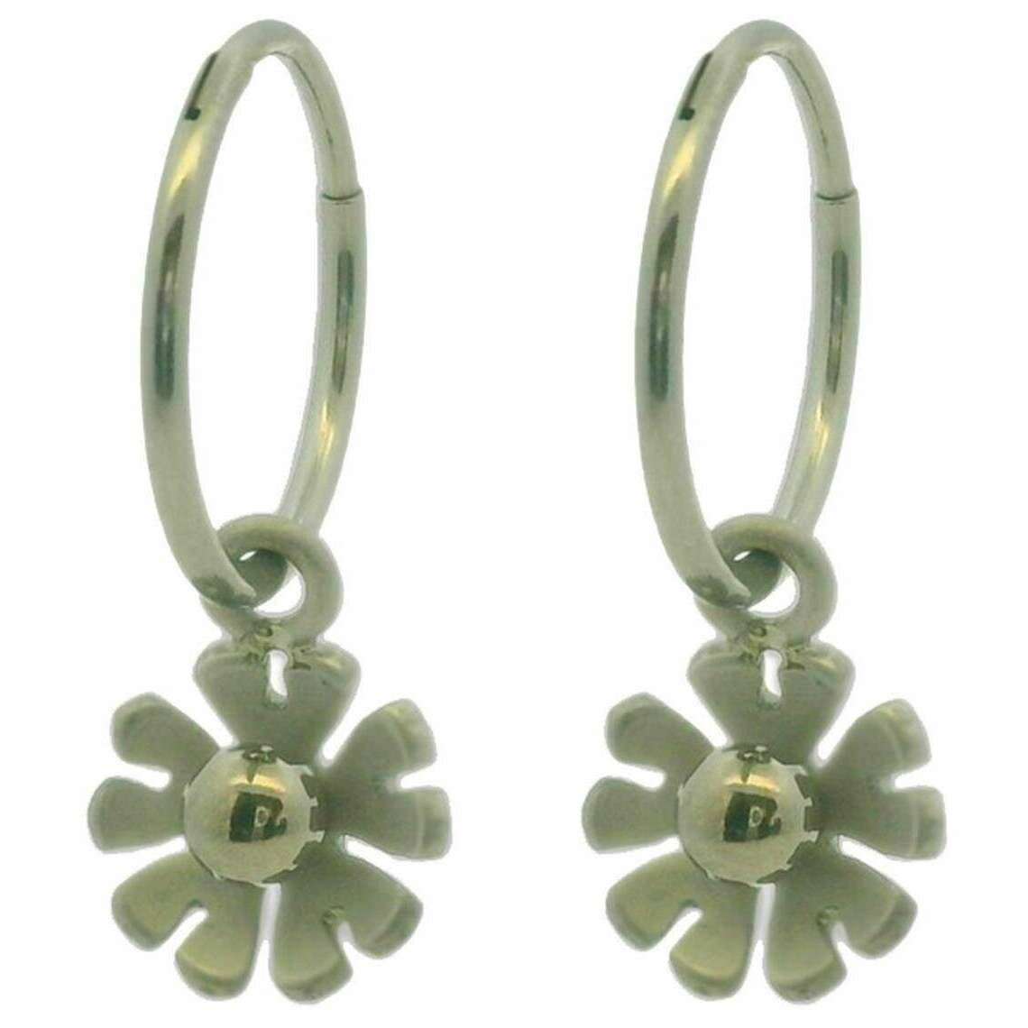 Ti2 Titanium Ten Petal Flower Charm Boucles d'oreilles - Argent naturel