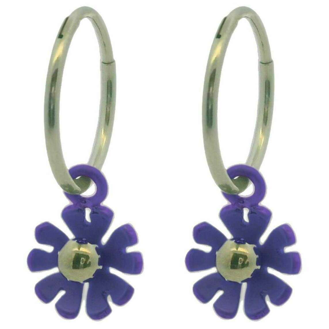 Ti2 Titanium Ten Petal Flower Charm Boucles d'oreilles - Purple