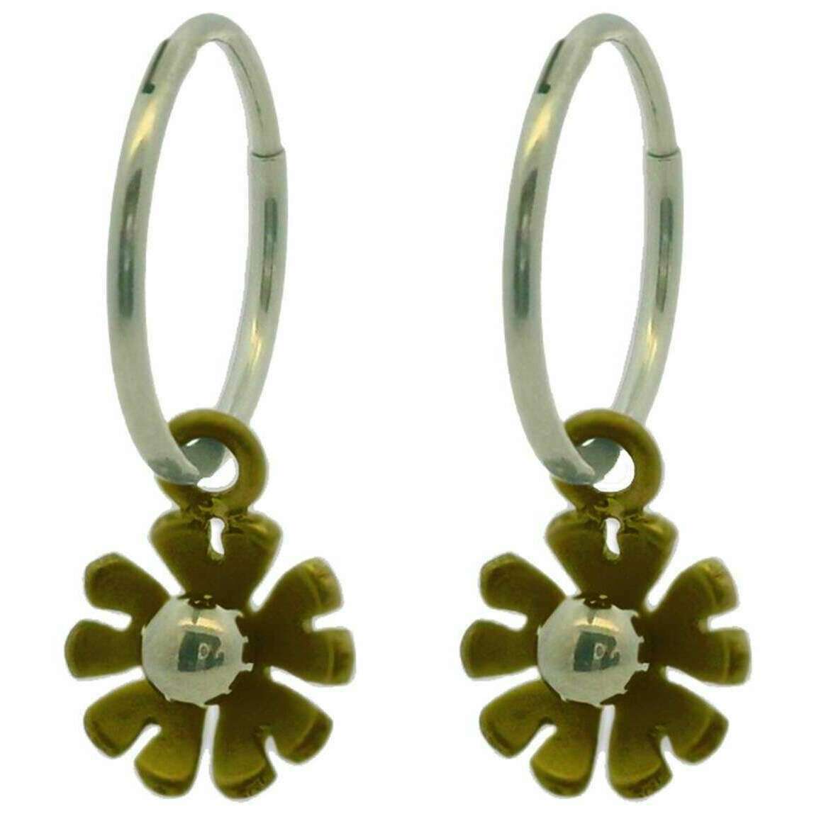 Ti2 Titanium Ten Petal Flower Charm Boucles d'oreilles - Tan