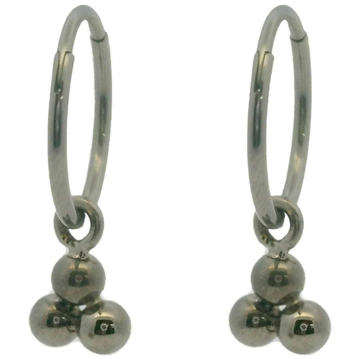 Ti2 Titanium Triple Bead Charm Hoop Boucles d'oreilles - Argent polis naturel