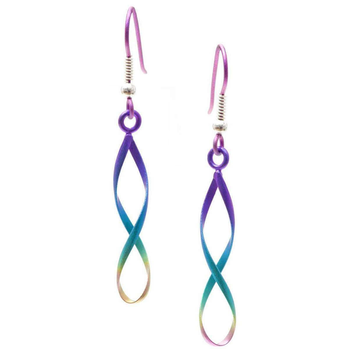 Boucles d'oreilles à double goutte TI2 Titanium Wirework - arc-en-ciel