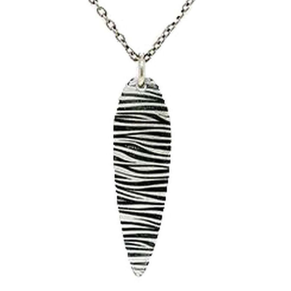 TI2 Titanium Zebra Print Long Drop Pendentif - Silver / Black