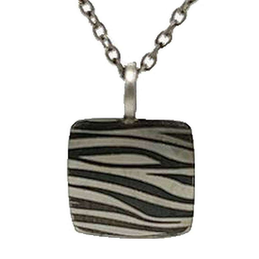 TI2 Titanium Zebra Print Square Pendant - Silver / Black