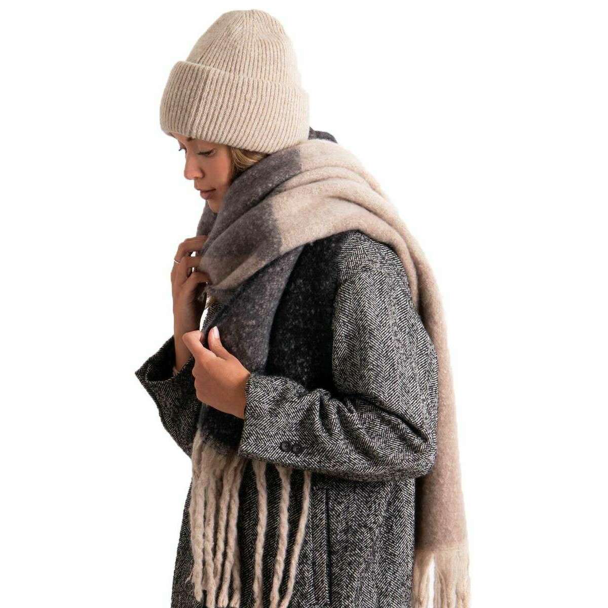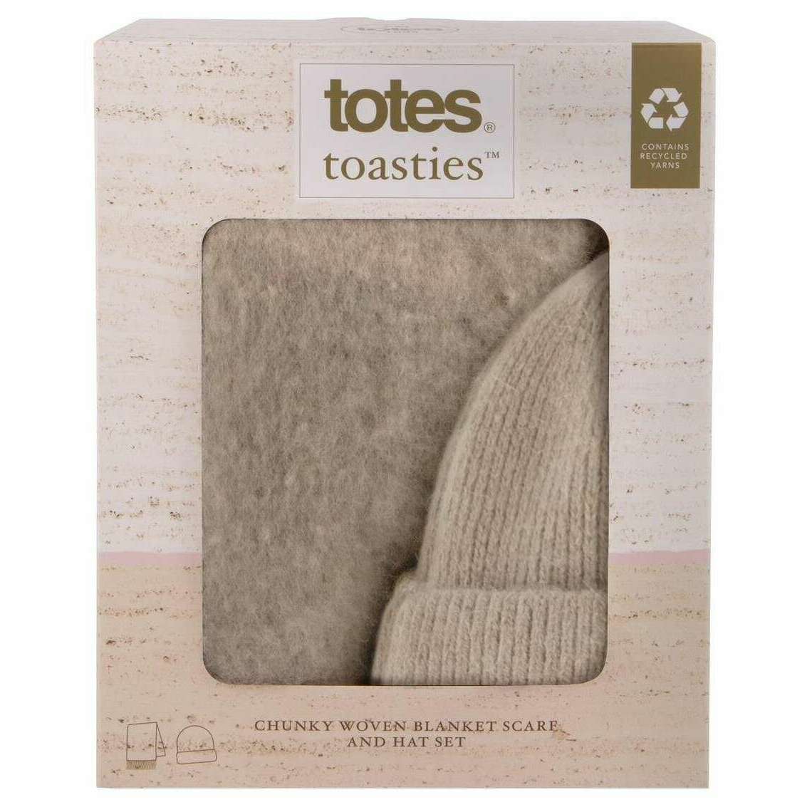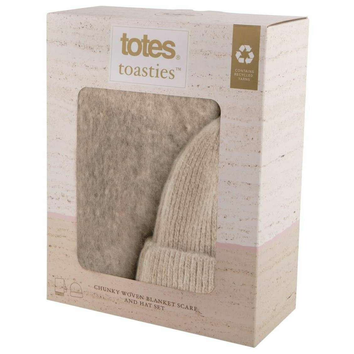 Ensemble écharpe et chapeau en couverture tissée épaisse Totes Toasties - Crème d'avoine/Gris