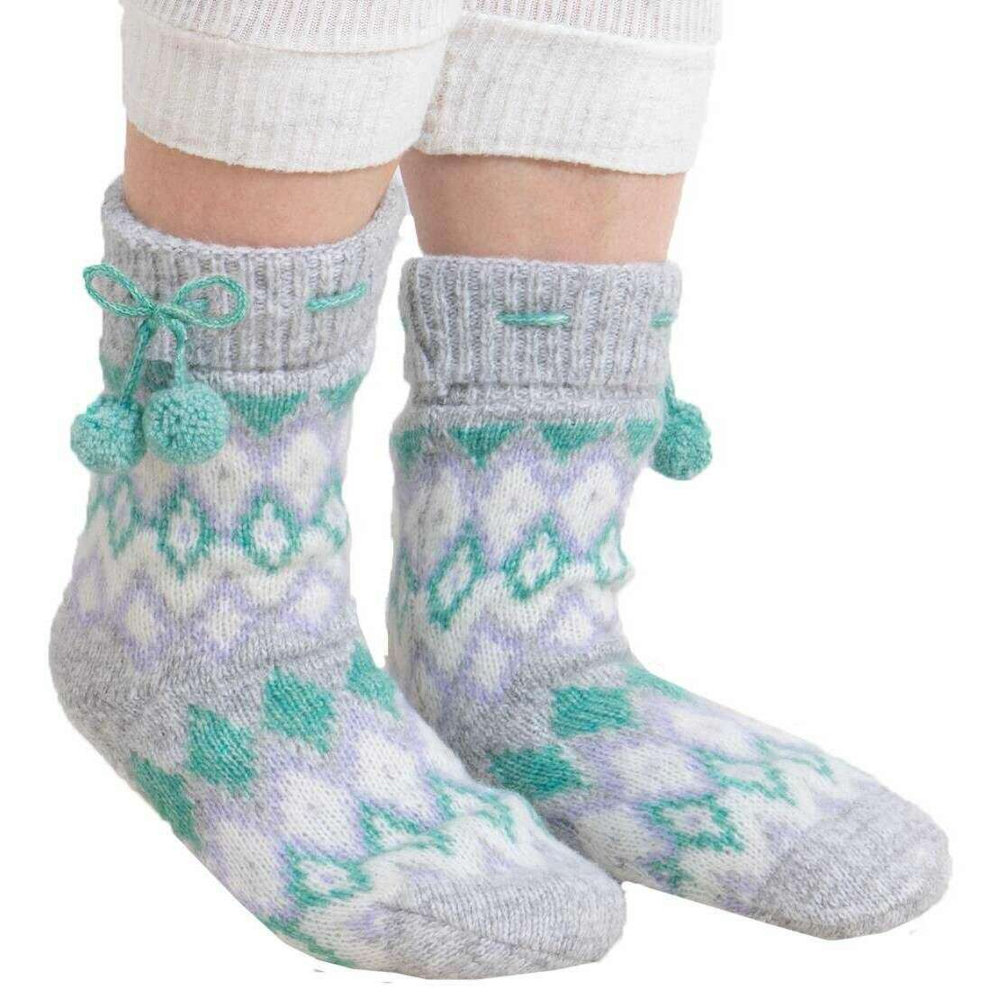Chaussons chaussettes Totes Toasties Fair Isle Chenille - Gris/Vert/Violet