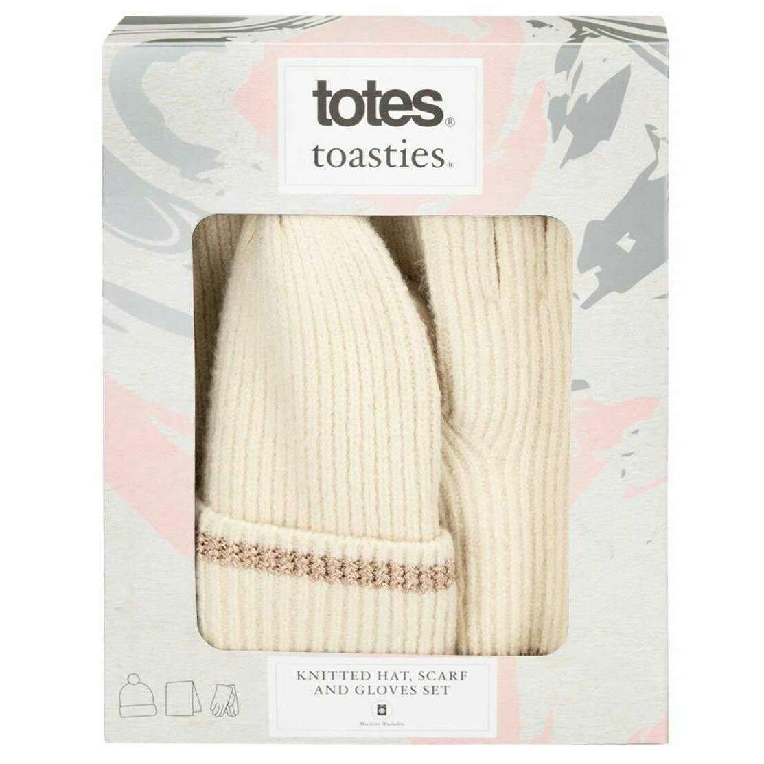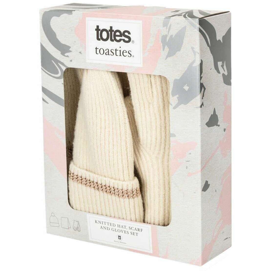 Coffret cadeau bonnet, écharpe et gants tricotés Totes Toasties - Crème d'avoine