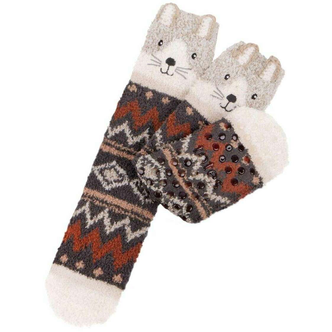 Totes toasties nouveauté des chaussettes de pantoufles super douces - chat brun