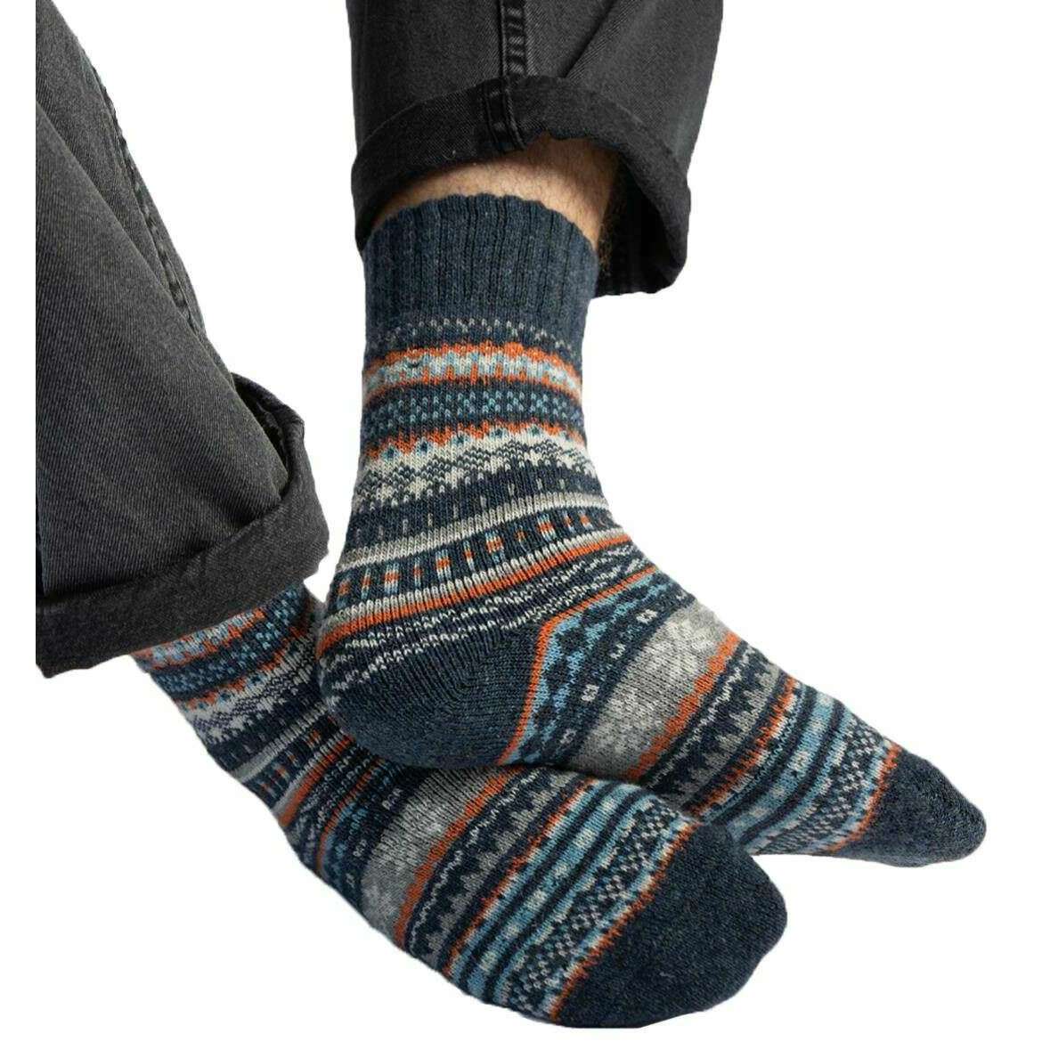 Chaussettes Totes Toasties en mélange de laine Fair Isle - Bleu marine/beige