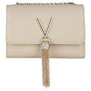 Ce sac bandoulière Divina pour femme est confectionné par la marque Valentino dans un coloris beige et est composé à 100% de polyuréthane. Il mesure 17 cm (hauteur) x 23 cm (largeur) x 8 cm (profondeur). Il est recommandé de l'essuyer avec un chiffon pour garder ce sac en bon état. Tous les sacs sont livrés avec un emballage Valentino. Le sac à bandoulière Valentino Divina - Beige présente un effet gaufré de grain de caviar, lui donnant une touche luxueuse qui vous incitera à porter ce sac à chaque occasion. Sa fermeture à bouton-pression garantit que toutes vos affaires sont bien sécurisées à l'intérieur et le magnifique matériel lui confère une élégance intemporelle. Combinaison parfaite entre praticité et sophistication, cette pochette est le compagnon idéal de toute sortie, qu'il s'agisse d'un déjeuner ou d'un cocktail en soirée.