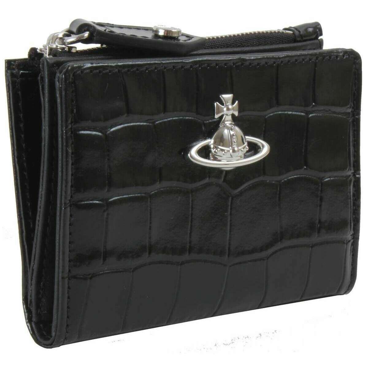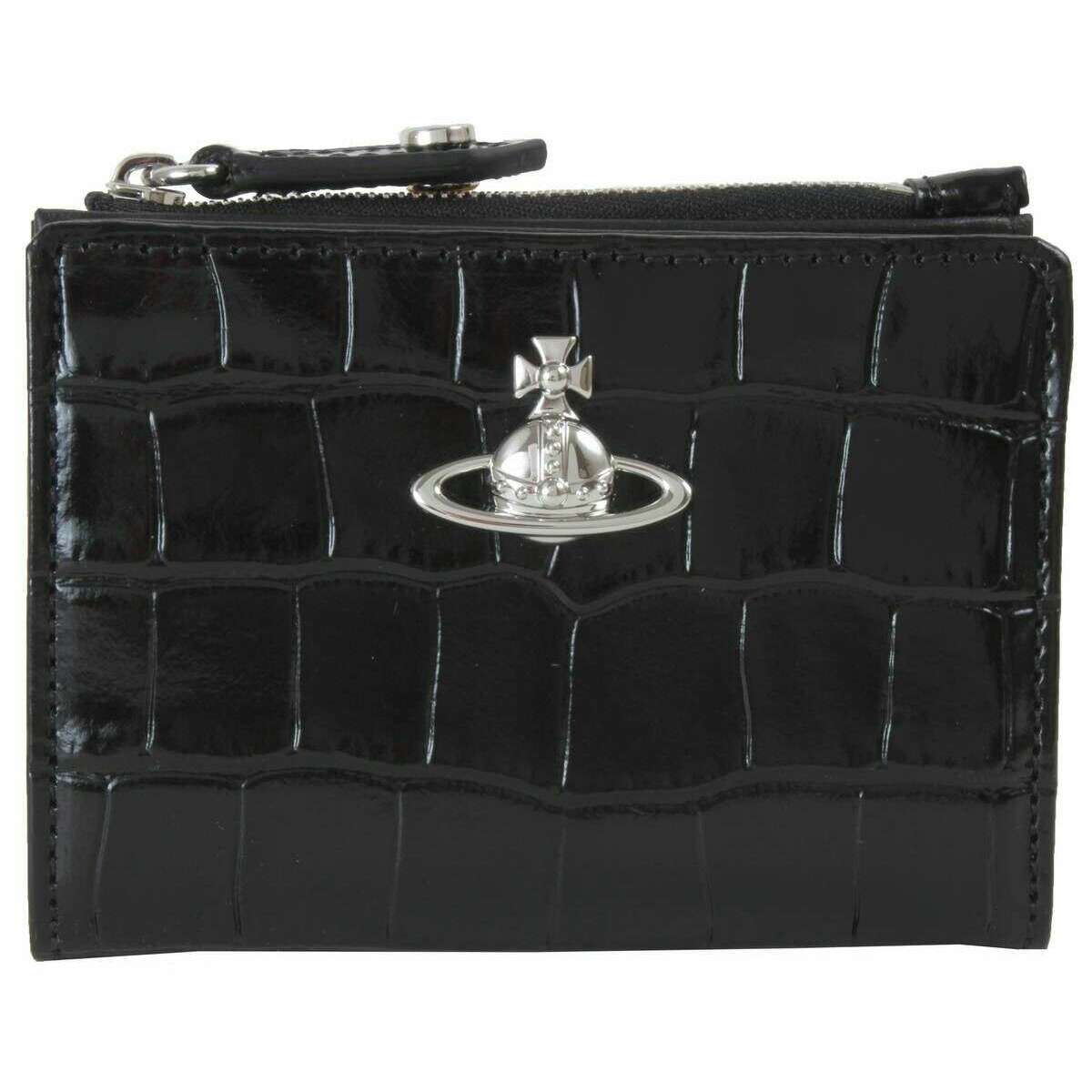 Vivienne Westwood Porte-cartes à rabat fin en relief effet croco - Noir