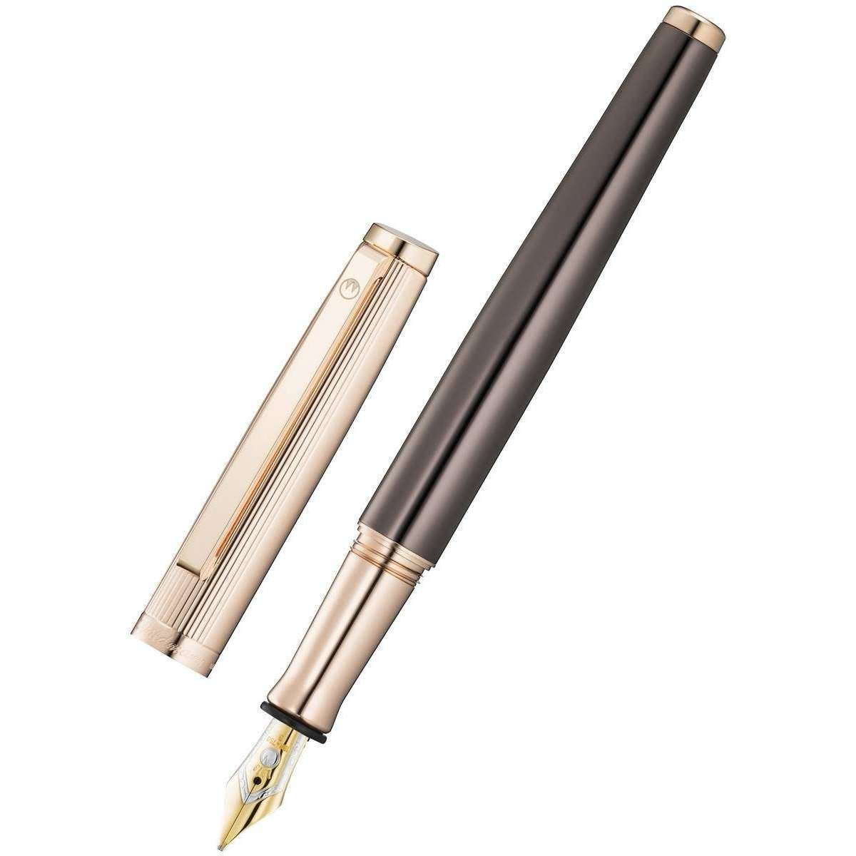 Waldmann Pens Toscan Pinstripe 18ct Gold Fountain Fountain - Chocolate Brown / Rose Gold