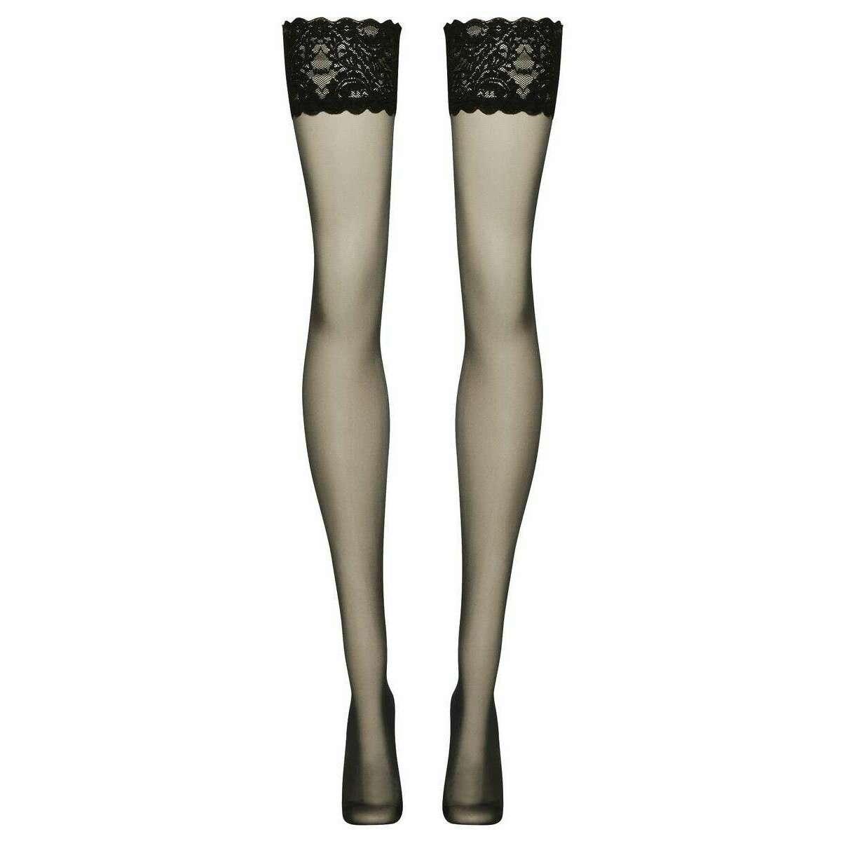 • Grip optimal, groupe siliconisé, belle bande en dentelle avec motif floral, 20 deniers, renforcement des orteils presque invisible