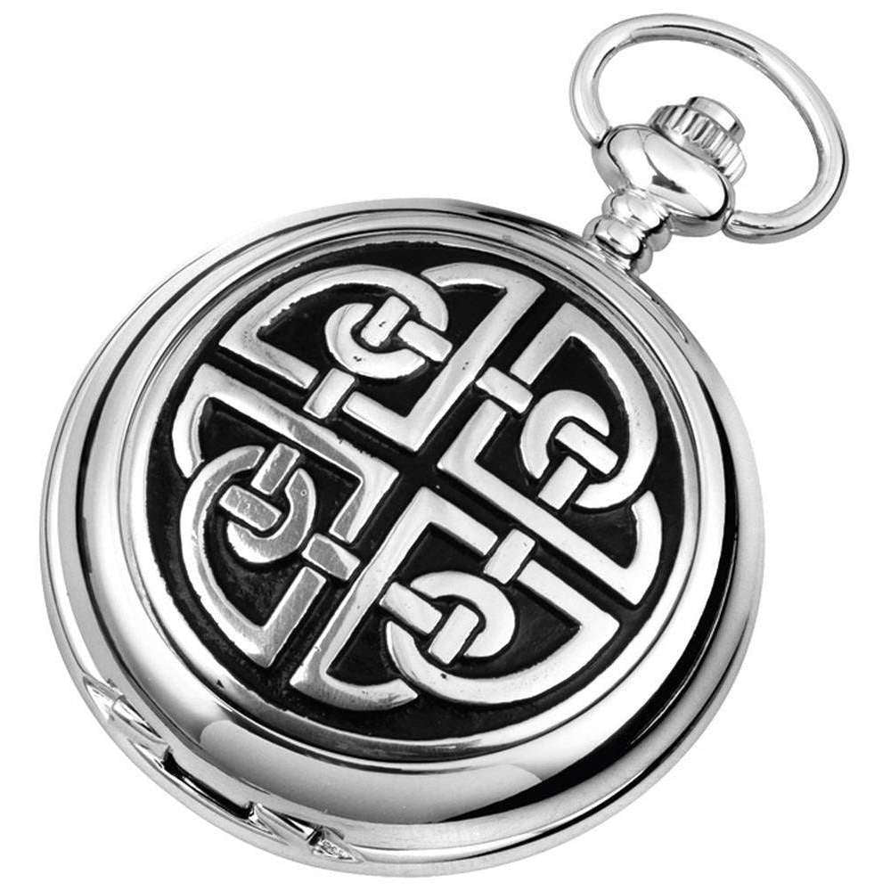Woodford Celtic Knot Chrome plaqué Double Hunter Hunter Skeleton Pocket Watch - Silver / Black