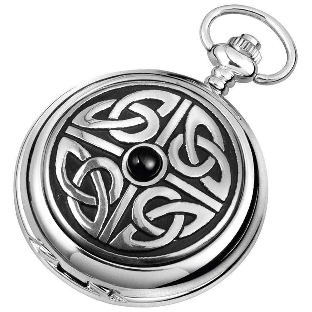 Woodford Celtic Knotwork Chrome plaqué Double Hunter Hunter Skeleton Pocket Watch - Silver / Black