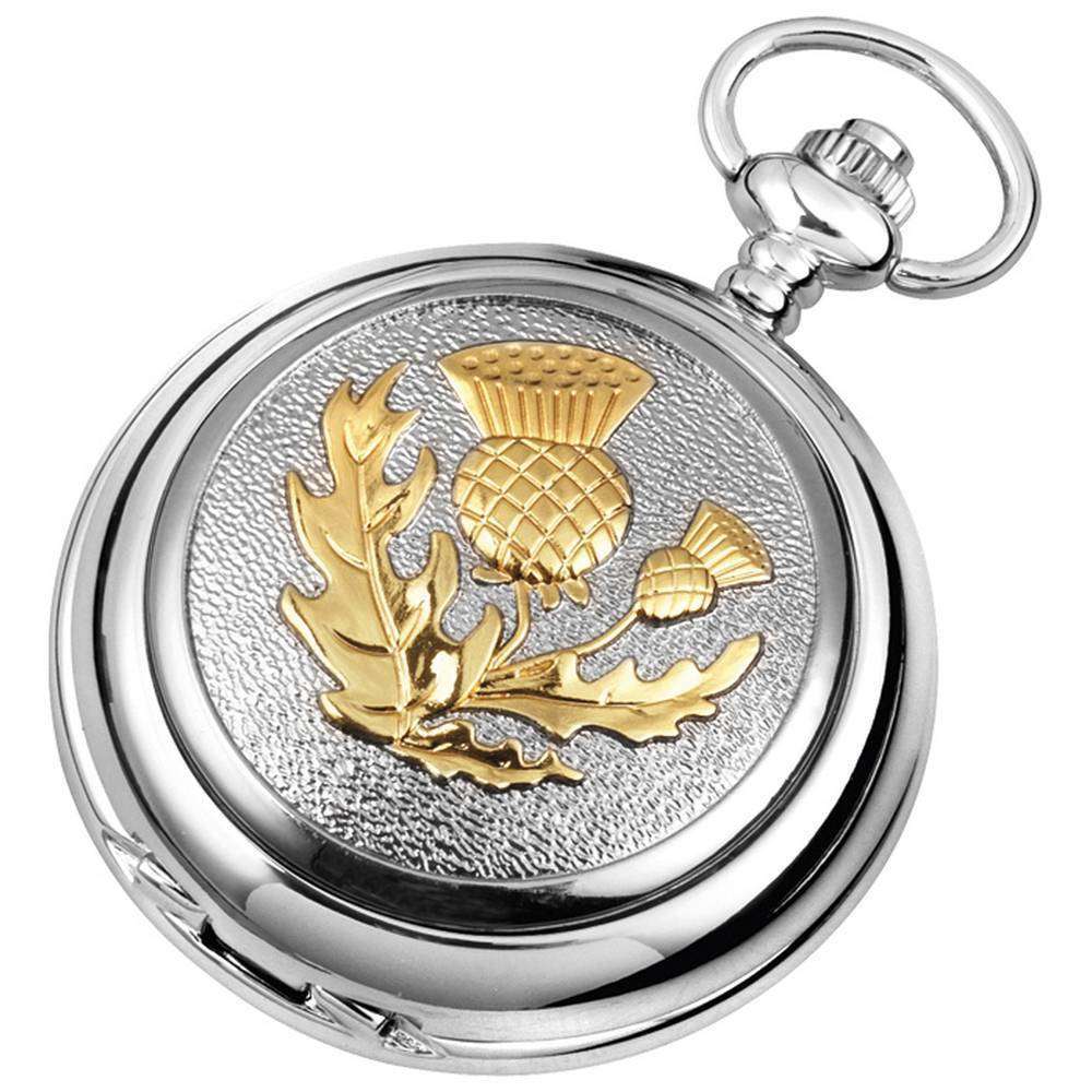 Woodford Celtic Thistle Chrome plaqué Full Hunter Quartz Pocket Watch - Silver / Gold