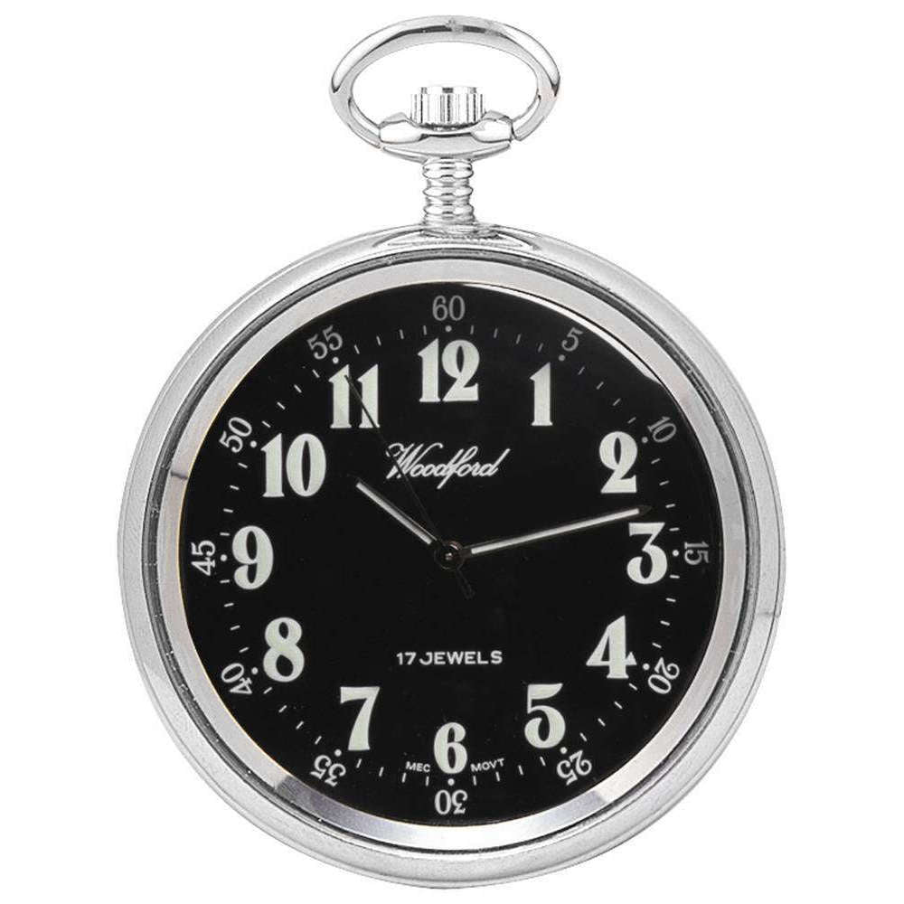 Woodford Chrome plaqué Arabe Open Face Mécanique de poche - Argent / noir