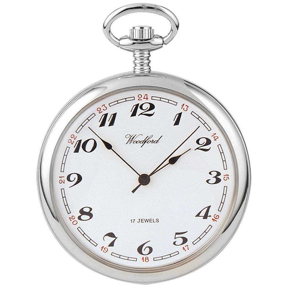 Woodford Chrome Plated Arabic Open Face Mechanical Pocket Watch - Silver/White