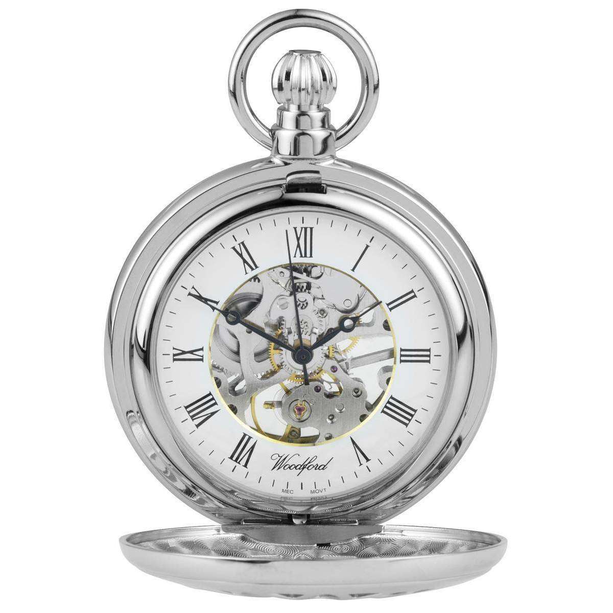 Woodford Chrome plaqué coupé à moitié chasseur mécanique de poche - argent
