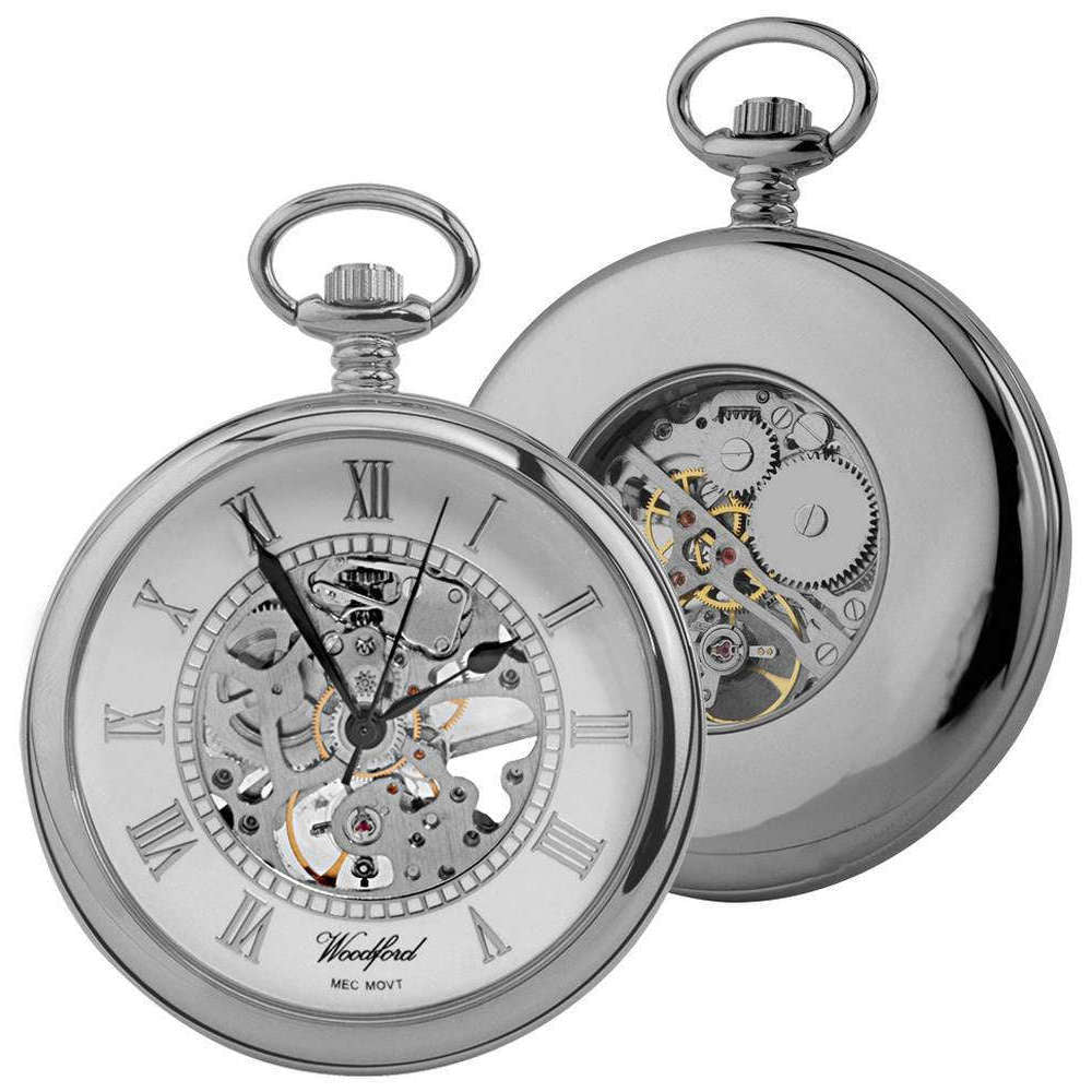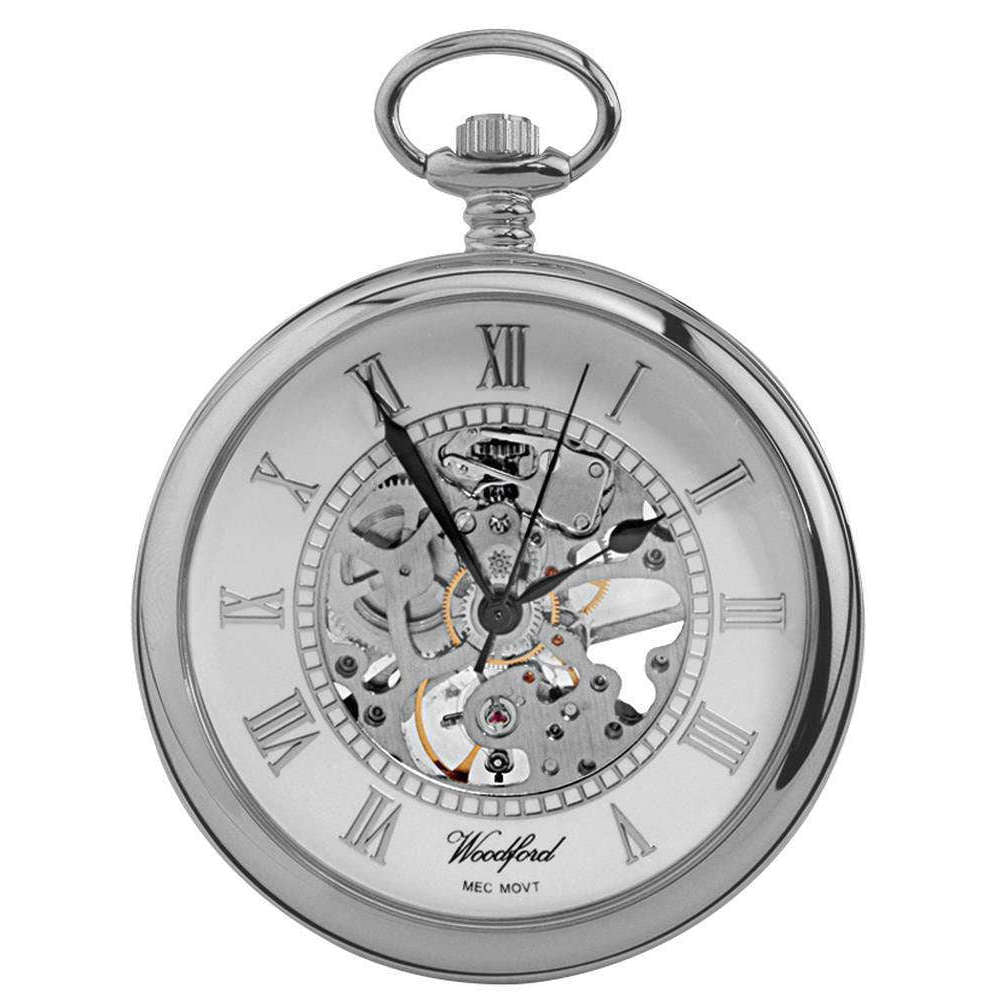 Woodford Chrome plaqué Centre ouvert Squelette Mécanique de poche Watch - Silver