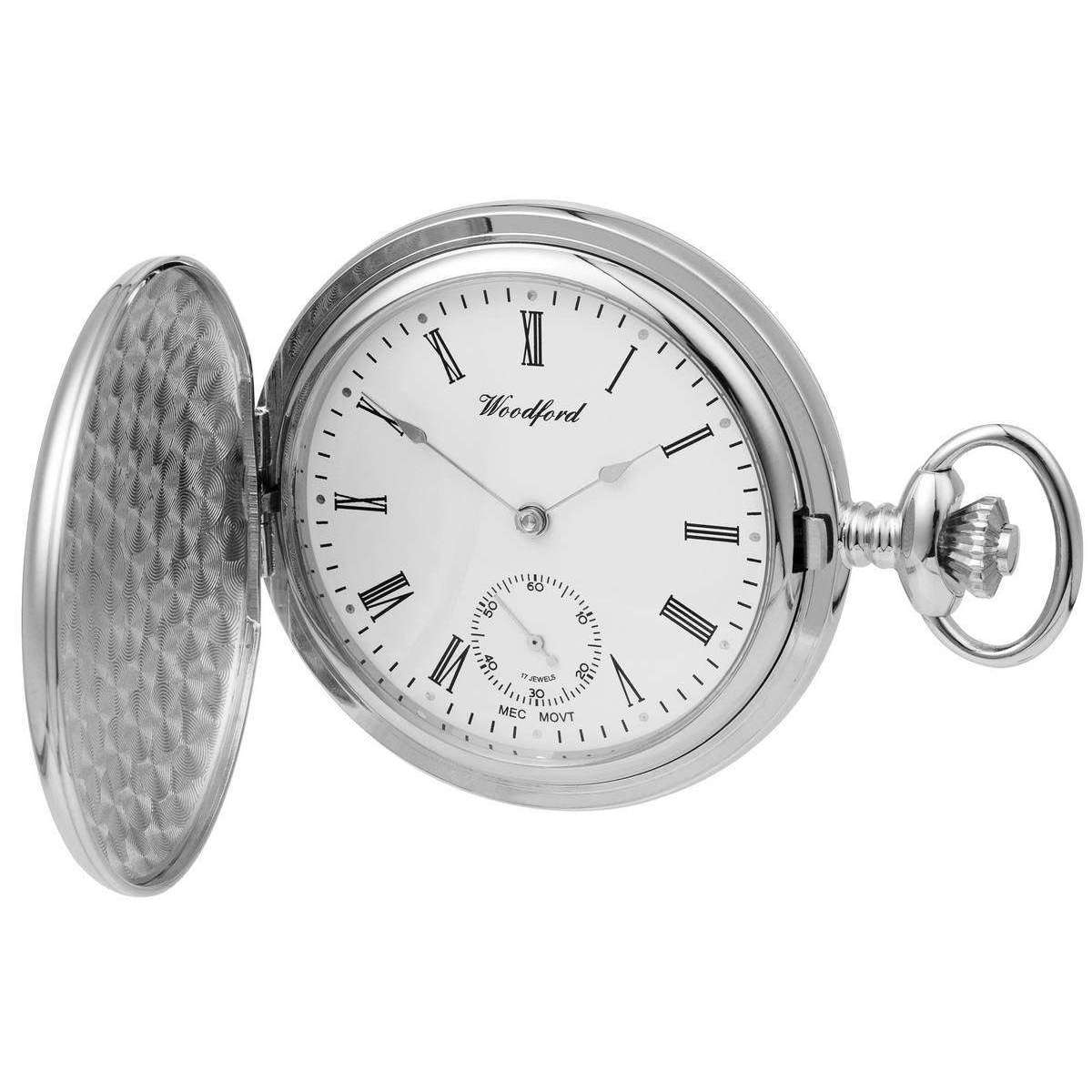 Woodford Chrome Plated Polished Full Hunter Mechanical Pocket Watch - Silver