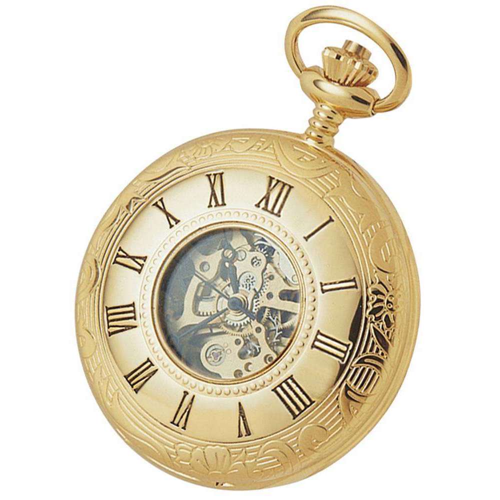 Woodford Gold plaqué Double Hunter Hunter Skeleton Spring Wound Pocket Watch - Gold