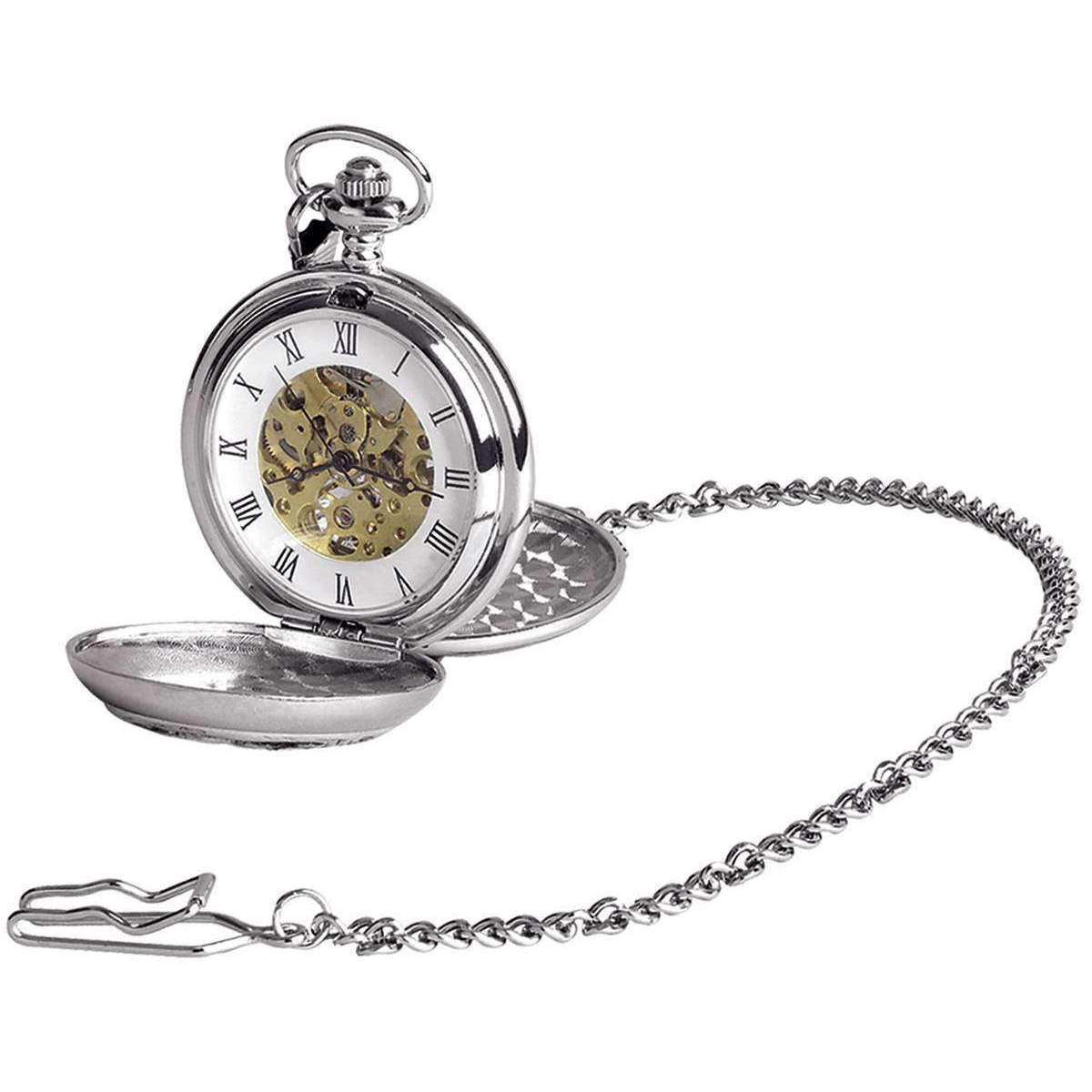 Woodford Plain Chrome plaqué Double Hunter Hunter Skeleton Pocket Watch - Silver
